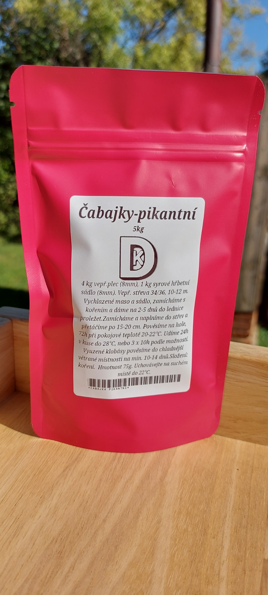 Směs koření na klobásy čabakového tipu. Složení: paprika sladká, chilli, česnek, dextroza, kmín.